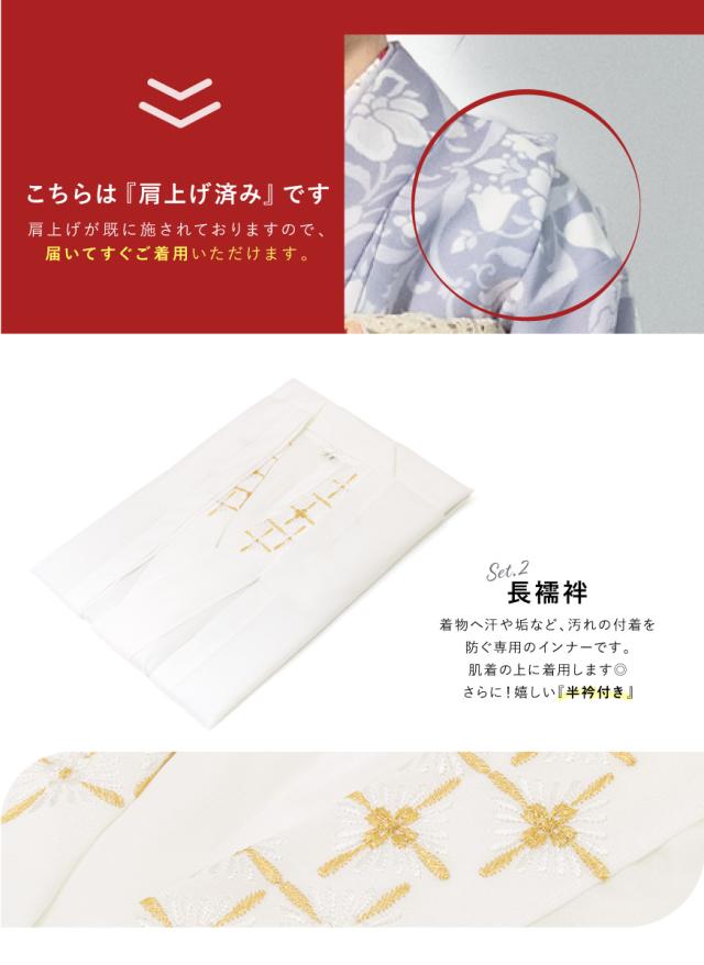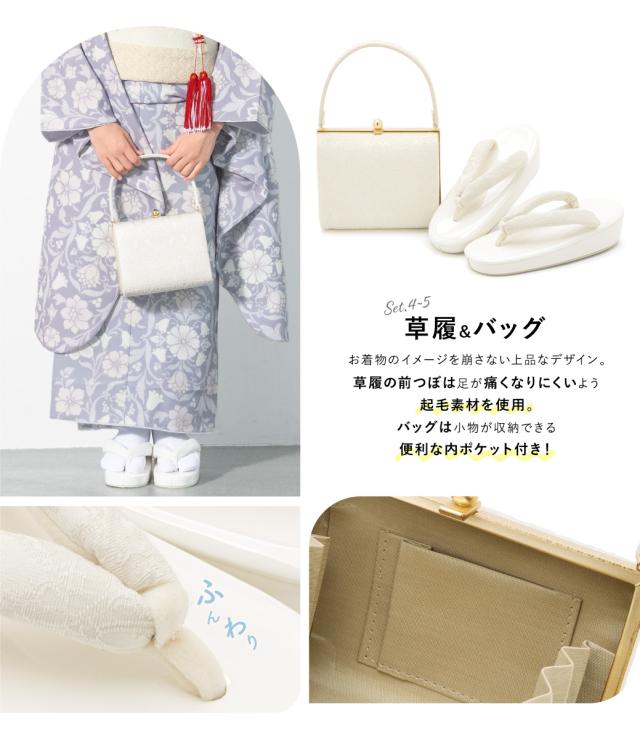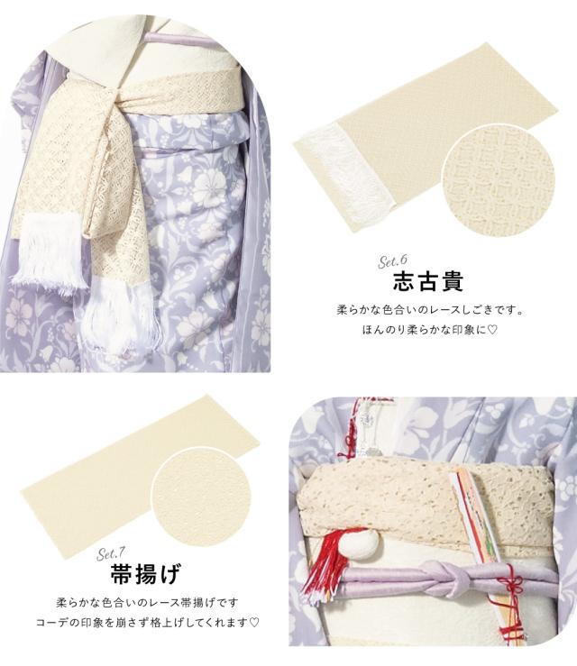※セット内容は【着物・長襦袢・作り帯・草履・バッグ・志古貴・帯揚げ・帯締め・扇子・筥迫・びら簪】です。その他の商品は含まれません。