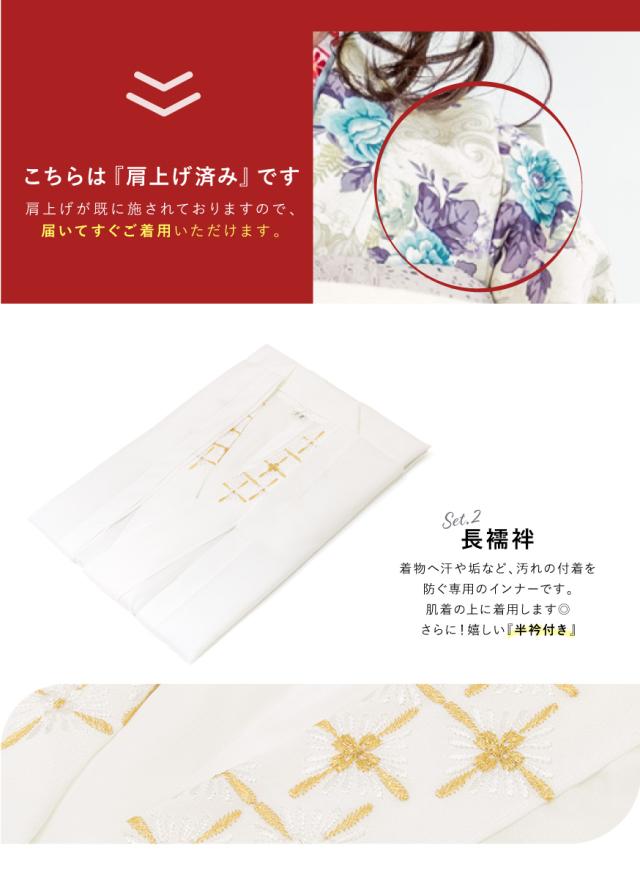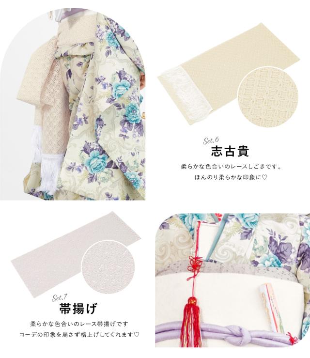 ※セット内容は【着物・長襦袢・作り帯・草履・バッグ・志古貴・帯揚げ・帯締め・扇子・筥迫・びら簪】です。その他の商品は含まれません。