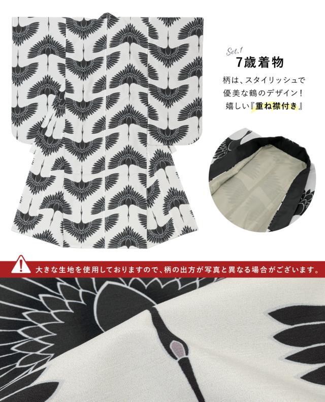七五三 着物 7歳 販売 七歳 着物セット 女の子 作り帯 筥迫 草履 バッグ 11点セット ベージュ系 黒 鶴 和服 和装 女児 仕立て上がり 送料無料
