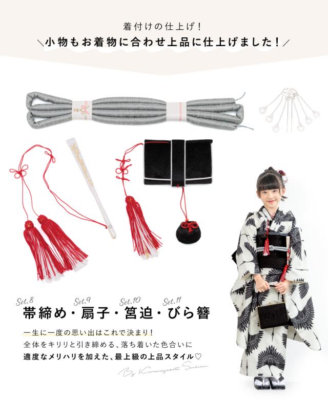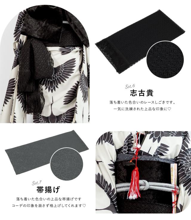 ※セット内容は【着物・長襦袢・作り帯・草履・バッグ・志古貴・帯揚げ・帯締め・扇子・筥迫・びら簪】です。その他の商品は含まれません。