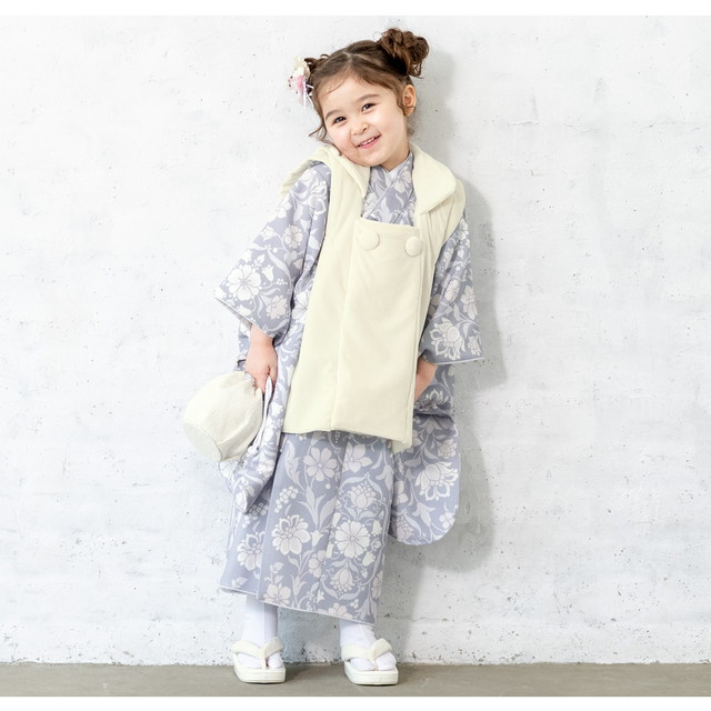 七五三 着物 3歳 販売 女の子 三歳 着物セット 被布セット 白 薄紫系 花 被布着 きもの 和服 和装 女児 子供 送料無料