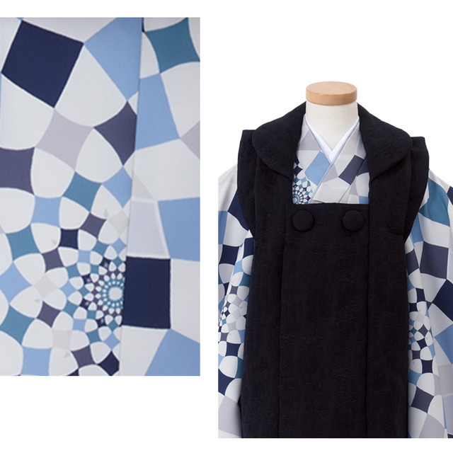 七五三 着物 3歳 販売 男の子 三歳 着物セット 被布セット 雪駄 紺系 青系 幾何学 被布着 きもの 和服 和装 男児 子供 送料無料