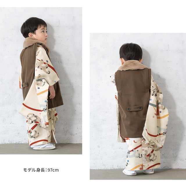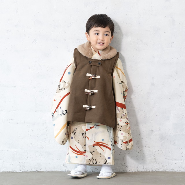 七五三 着物 3歳 販売 男の子 三歳 着物セット 被布セット ダッフル アイボリー ブラウン 波 ツバメ 被布着 きもの 和服 和装 男児 子供 送料無料