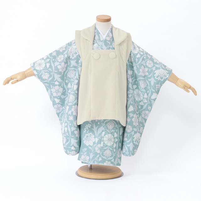 七五三 着物 3歳 販売 女の子 三歳 着物セット 被布セット 白 青系 花唐草 被布着 きもの 和服 和装 女児 子供 送料無料