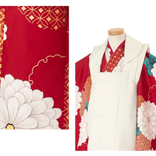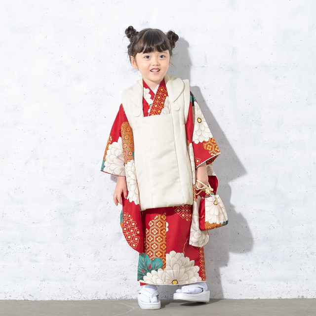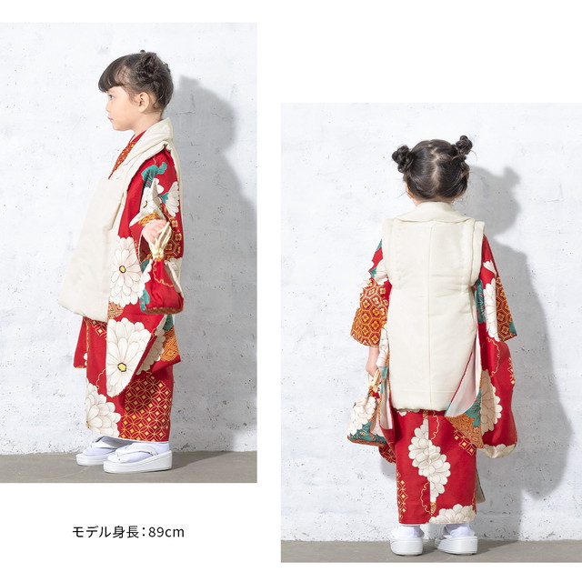 七五三 着物 3歳 販売 女の子 三歳 着物セット 被布セット 白 赤 菊 花亀甲 雪輪 被布着 きもの 和服 和装 女児 子供 送料無料