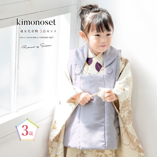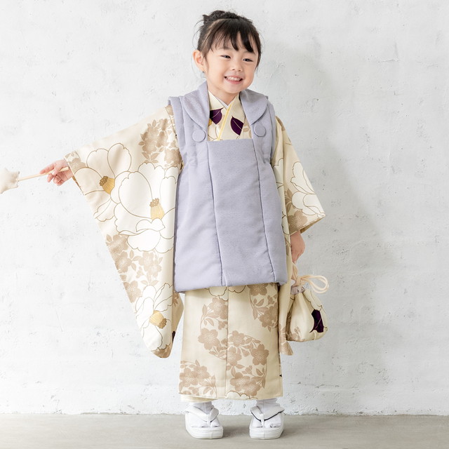 七五三 着物 3歳 販売 女の子 三歳 着物セット 被布セット 紫 ベージュ 椿 梅 被布着 きもの 和服 和装 女児 子供 送料無料