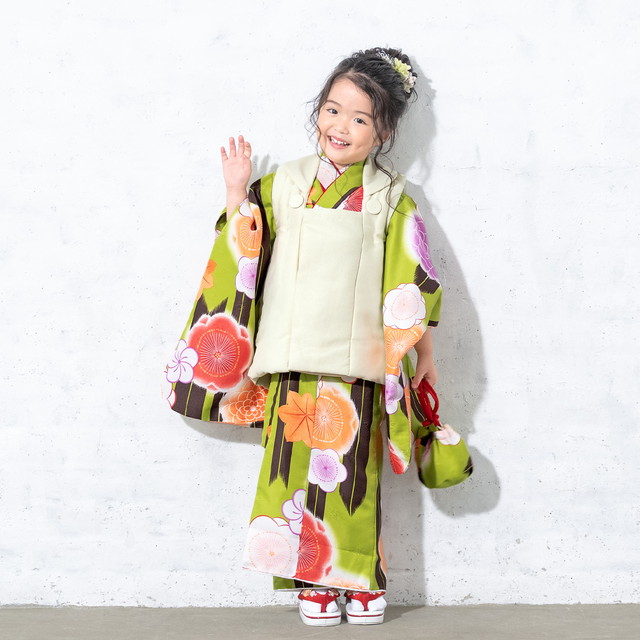 七五三 着物 3歳 販売 女の子 三歳 着物セット 被布セット クリーム 緑 矢羽根 梅 菊 被布着 きもの 和服 和装 女児 子供 送料無料