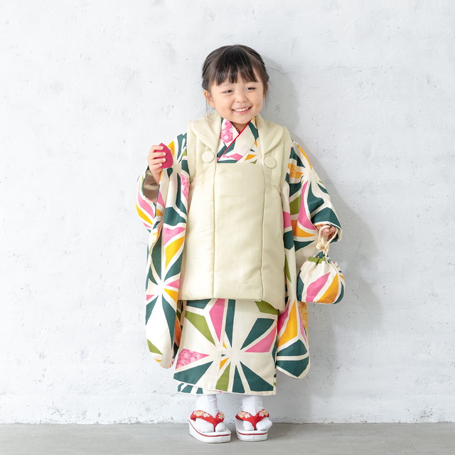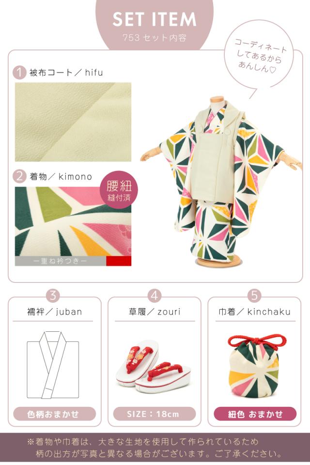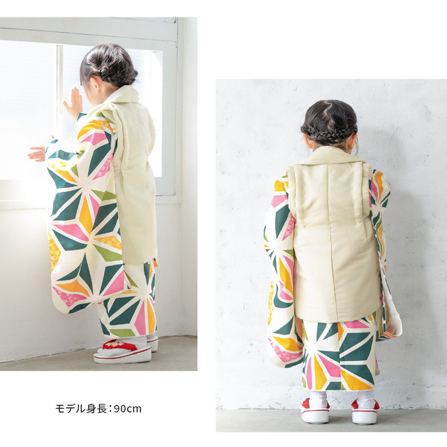 七五三 着物 3歳 販売 女の子 三歳 着物セット 被布セット クリーム カラフル 麻の葉 被布着 きもの 和服 和装 女児 子供 送料無料