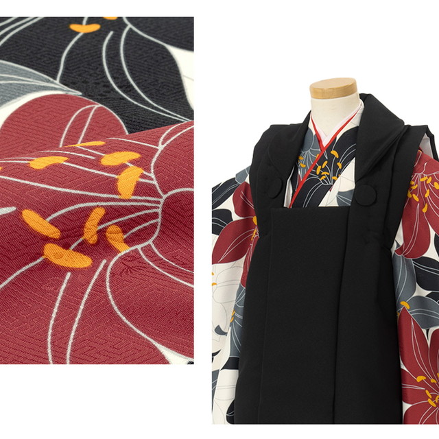 ※着物の柄部分は大きな生地を使用して作られておりますので、色や柄の出方、模様の配置等が画像と異なる場合がございます。