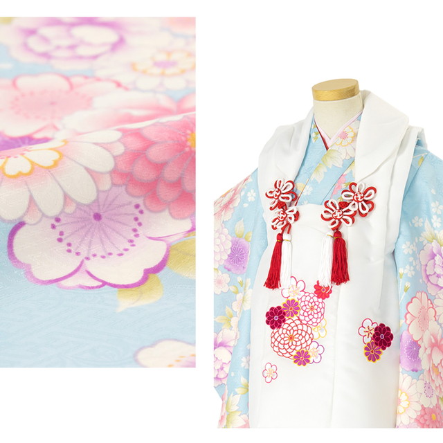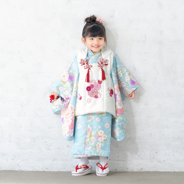七五三 着物 3歳 販売 女の子 三歳 着物セット 被布セット 白 水色 牡丹 桜 刺繍 被布着 きもの 和服 和装 女児 子供 送料無料