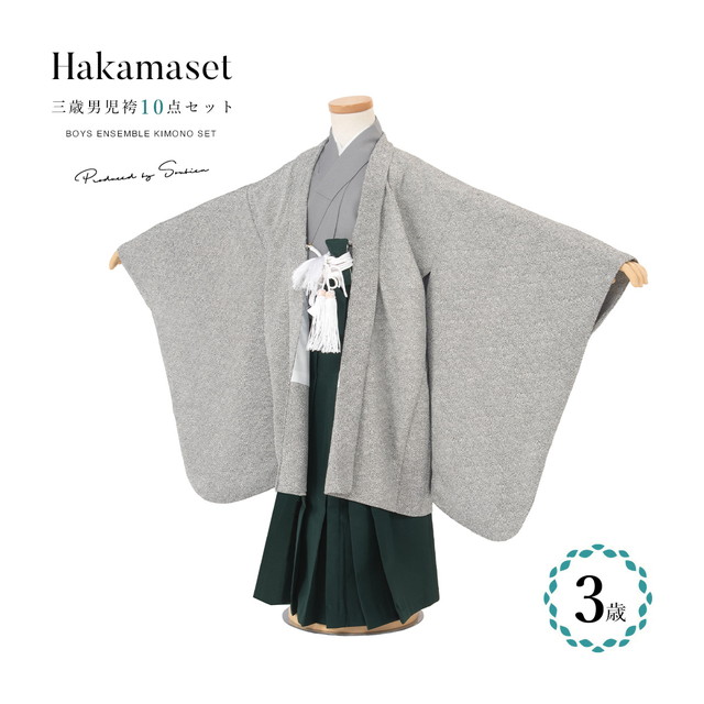 七五三 着物 3歳 販売 三歳 着物 男の子 袴 江戸小紋柄 黒系 グレー系 灰色系 緑 鮫小紋 無地 レトロ モダン 和服 和装 子供 送料無料