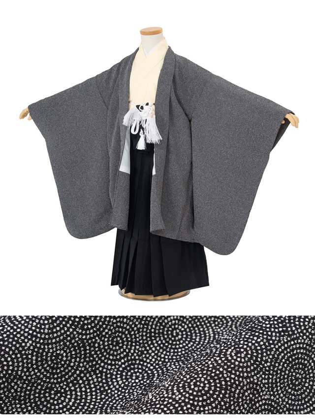 七五三 着物 3歳 販売 三歳 着物 男の子 袴 江戸小紋柄 黒系 クリームホワイト 渦巻 無地 レトロ モダン 和服 和装 子供 送料無料