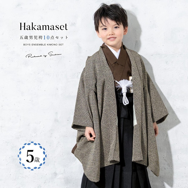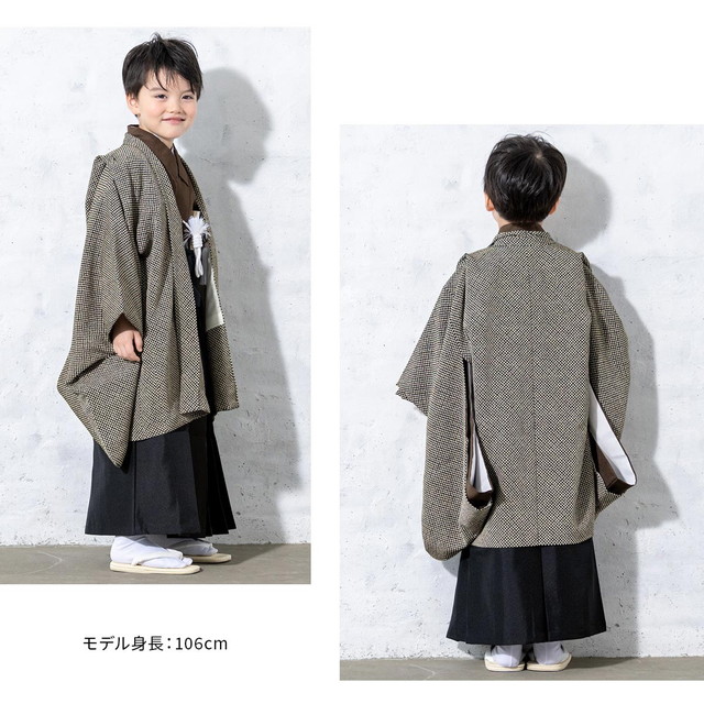 七五三 着物 5歳 販売 五歳 着物 男の子 袴 江戸小紋柄 黒系 茶色 ブラウン 鹿の子柄 疋田紋様 無地 羽織 半襦袢 帯 羽織紐 扇子 懐剣 お守り袋 雪駄 子供 送料無料