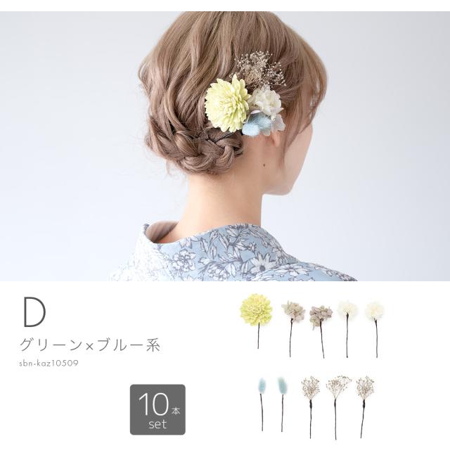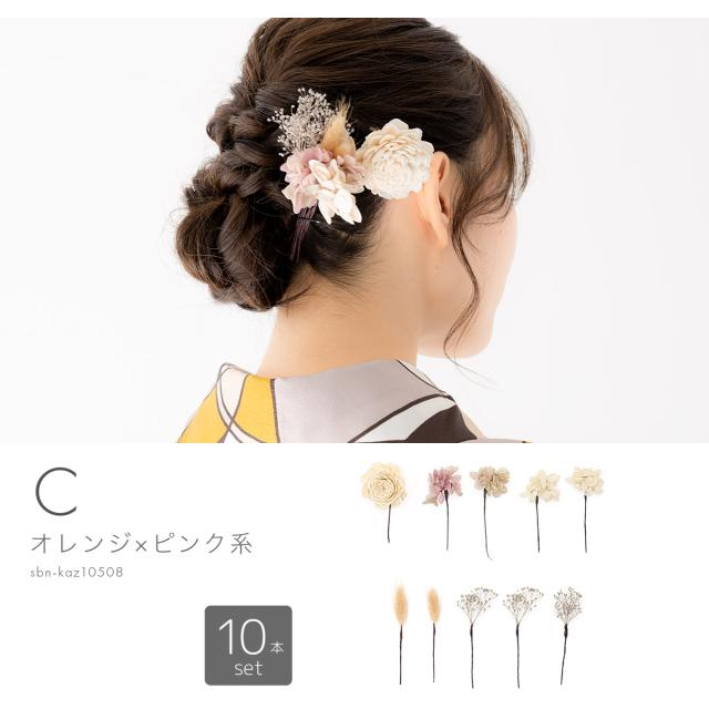 髪飾り 浴衣 成人式 10点 セット 振袖 卒業式 袴 ドライフラワー かすみ草 花 紫陽花 ねこやなぎ アースカラー 白 ピンク オレンジ 緑 送料無料