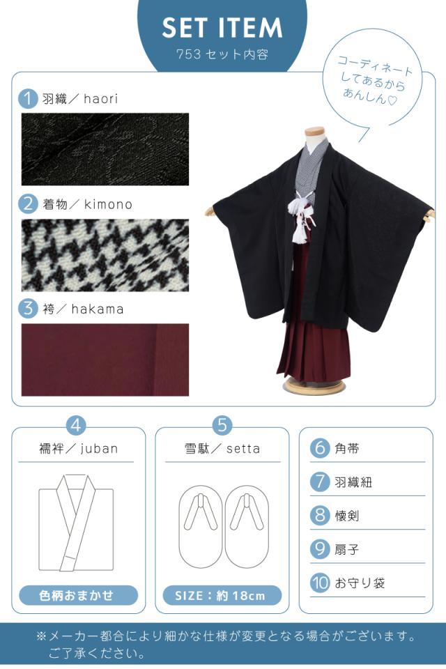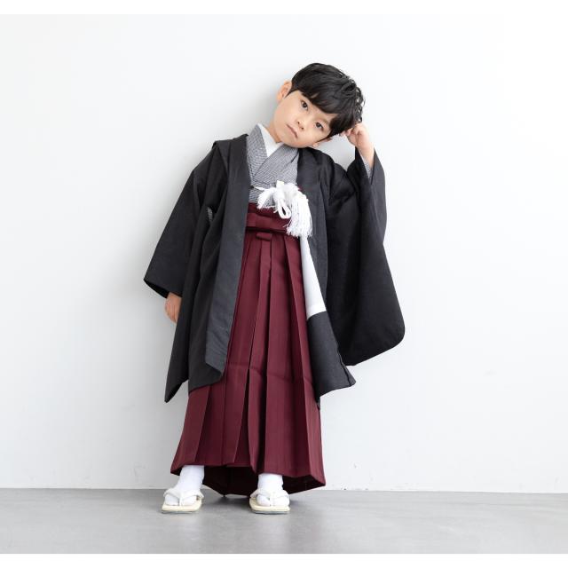 七五三 着物 5歳 販売 五歳 着物 男の子 袴 黒系 濃赤系 モノクロ 千鳥格子 羽織 半襦袢 帯 羽織紐 扇子 懐剣 お守り袋 雪駄 子供 送料無料