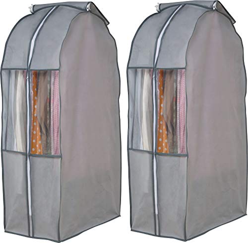 アストロ 衣類カバー グレー マチ付き ワイド ショートサイズ 2枚組 不織布 洋服カバー 衣装カバー 透明窓 防虫剤ポケット付き 底閉じタイプ まと