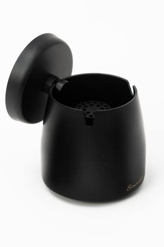 Smodify 灰皿 ふた付き 屋外 卓上 小サイズ 大容量 ステンレス はいざら (小, ブラック)