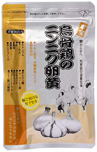 原材料:有機栽培ニンニク、烏骨鶏卵、オリーブ油(エキストラバージン)、しそ油、ゼラチン、グリセリン、蜜ろう、とうもろこしタンパク 内容量:62粒 商品サイズ(高さx奥行x幅):14.5cm×1cm×9.3000000000000007cm