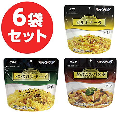 ペペロンチーノ、カルボナーラ、きのこのパスタの3種各2食 ご家庭用のまとめ買いにも。お湯を入れてソースをまぜるだけ!保存食、備蓄品、非常食に。登山やキャンプにもオススメ。長期保存可能な本格ショートパスタ!