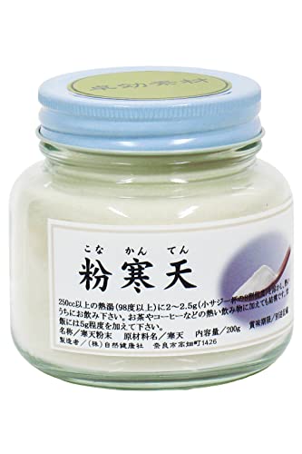 原材料/寒天(国内製造|海藻はチリなどの南米、地中海沿岸) 無添加(香料や保存料を使用していません) 内容量/200g(約40日分。一日に5gを使用した場合) 栄養成分(100g中)/熱量20kcal、たんぱく質0g、脂質0g、糖質5g、食物繊維80.0g、食塩相当量0.1g 使用に便利な広口容器入り