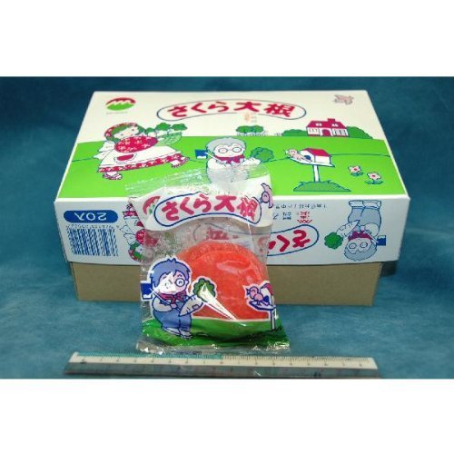 50円売×20入 関東地方の駄菓子屋さんの定番商品!! 本当の大根漬け。 さくら色した酢漬けのカリカリ大根。 珍味系駄菓子は、工夫次第で食卓にも並びそうですね。