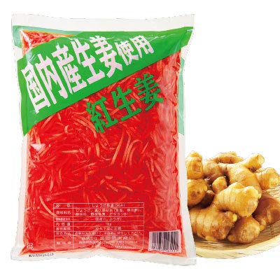 国産生姜を野菜色素で色付けしております。合成着色料・保存料を一切使用しないこだわりの紅生姜です 業務用タイプの1kg 自社管理農場で徹底した管理のもと栽培された、生姜専門店だからできるこだわりの生姜を使用し製造しております。 牛丼、ラーメン、焼きそば、お好み焼きなどの料理と合わせてどうぞ。