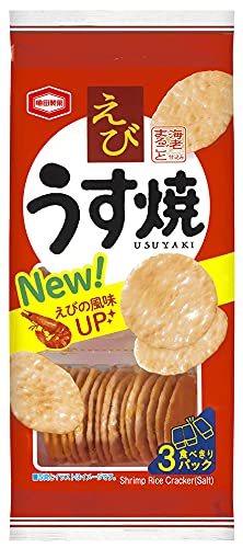 亀田製菓独自の製法による”うすさ”が食感のポイント。このうすい生地を短時間で一気に焼き上げることで、パリパリとした軽快な食感が実現しました。 うるち米(国産、米国産)、植物油脂、食塩、魚介エキス調味料、えび、砂糖、たん白加水分解物、粉末しょうゆ、香辛料/調味料(アミノ酸等)、着色料(紅麹、ウコン)、植物レシチン、加工でん粉、香料、(一部にえび・小麦・大豆・豚肉を含む)