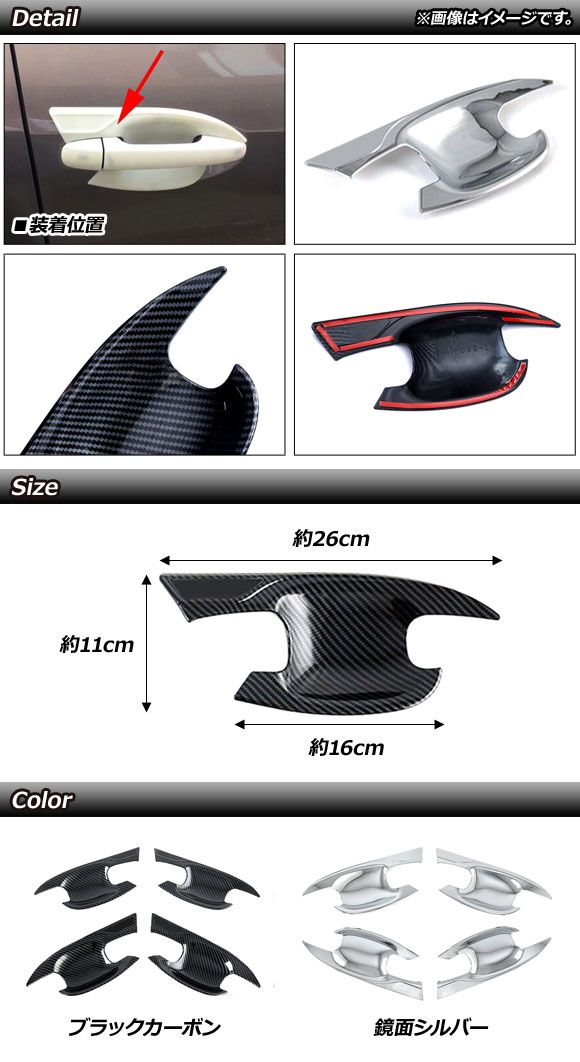 ドアハンドルインナーカバー スバル レガシィアウトバック BT系 ブラックカーボン ABS製 入数:1セット(4個) AP-XT1748-BKC