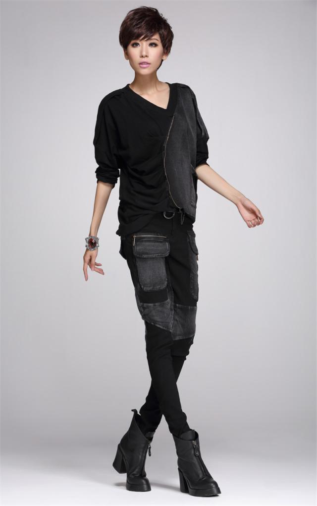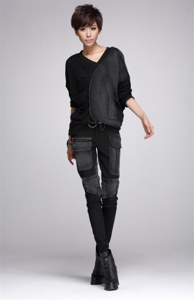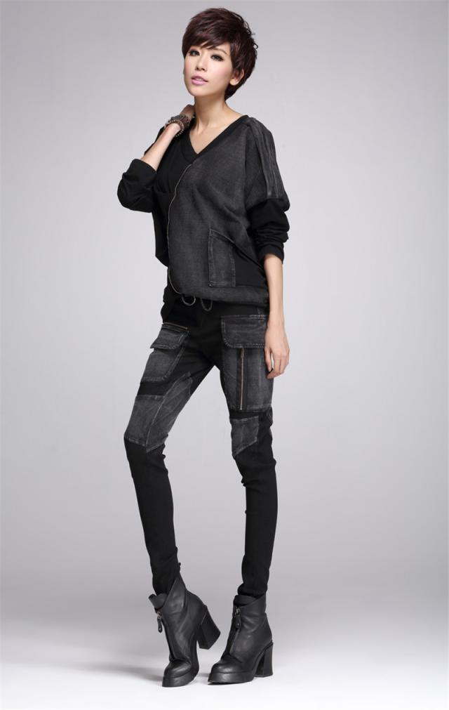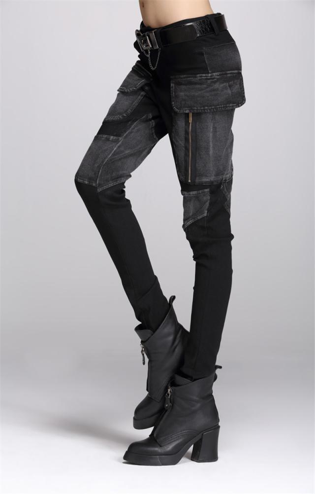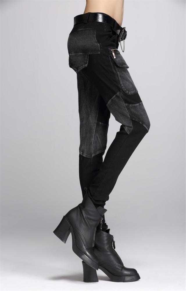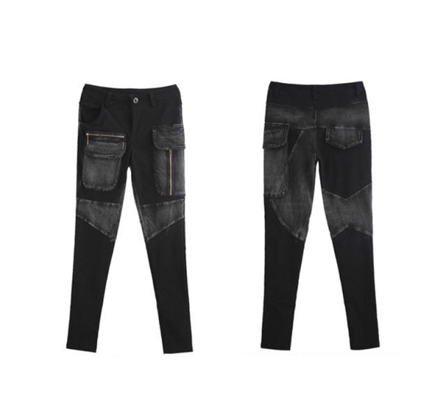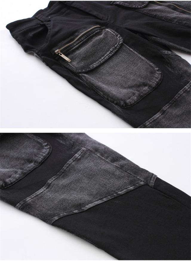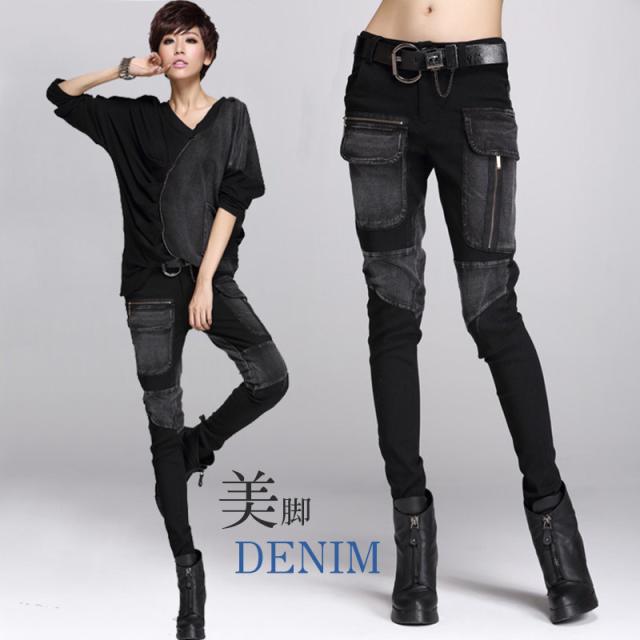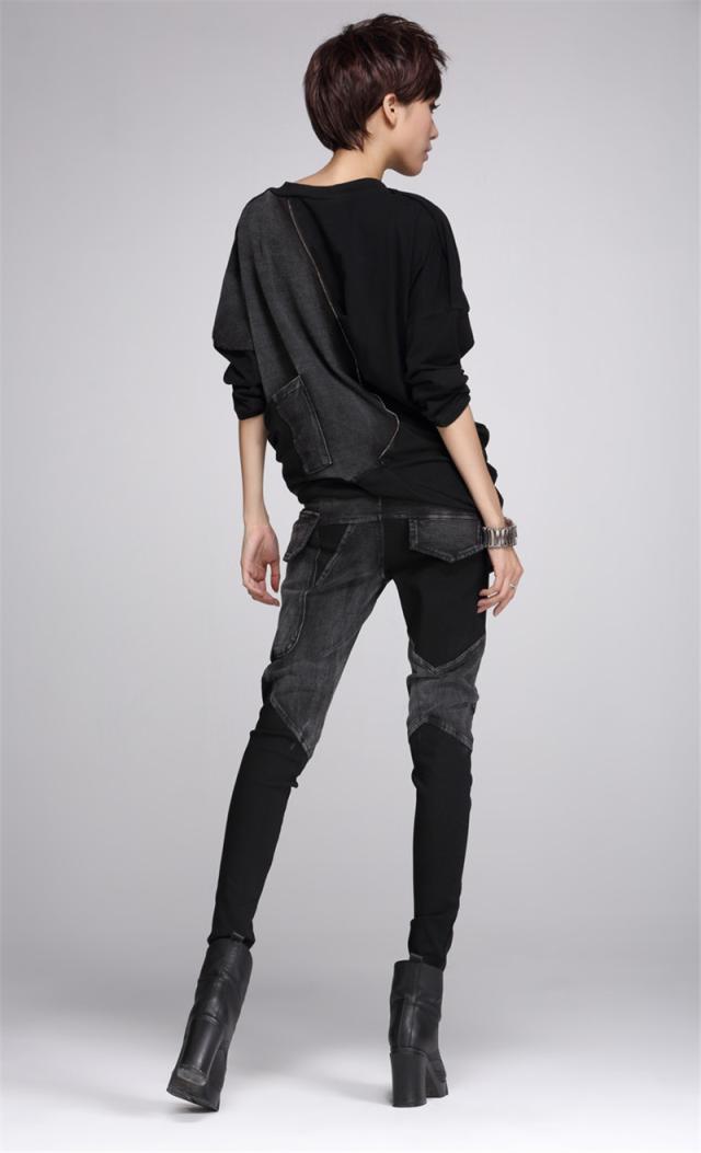 デニムパンツ レディース 春秋冬 デニム サルエル パッチワーク 個性 ジップ スリム サルエルパンツ 美脚 ジーンズ ゆったり