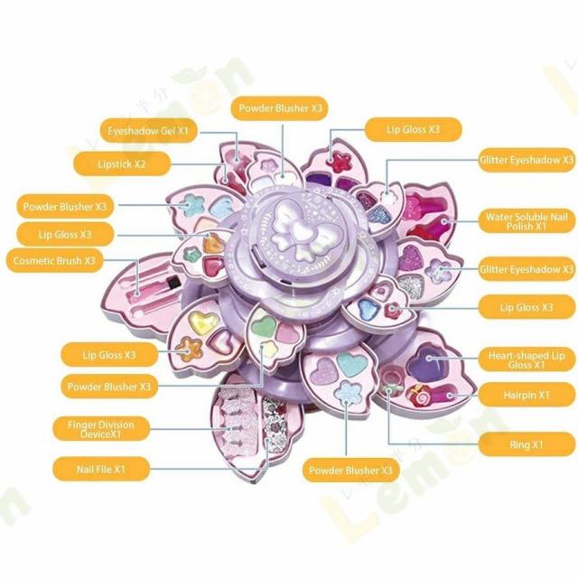 【超豪華セット】女の子の憧れ、超豪華メイクおもちゃが登場!アイシャドー・マスカラ・お化粧ブラシ・口紅・ネイルポリッシュなどの様々なメイク道具を用意しており、メイクの気分が盛り上がります。