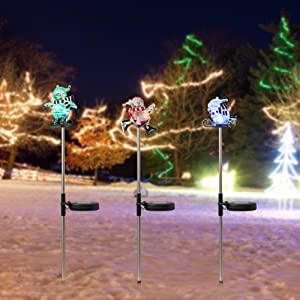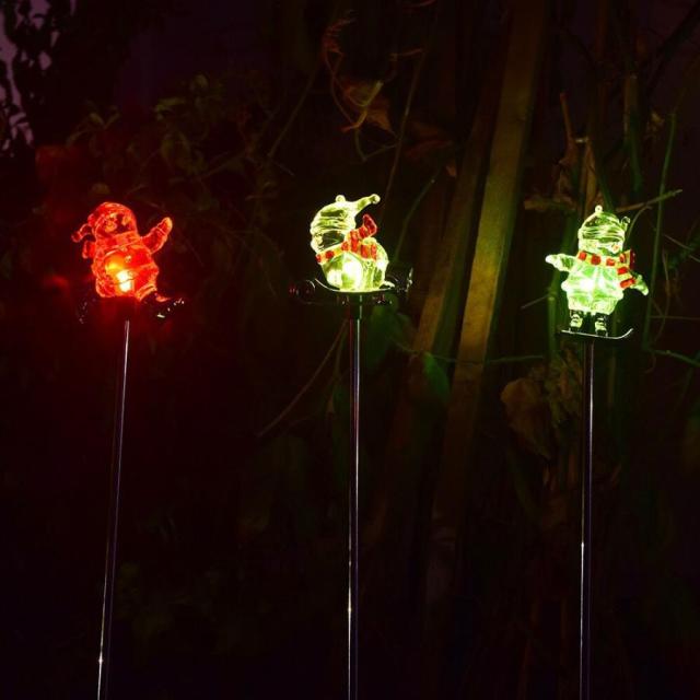 スノーマンソーラーライト クリスマス用ライト RGB色変更 防水 屋外 置物 自動点灯 ガーデン プレゼント ギフト インテリア オブジェ(3点セット)