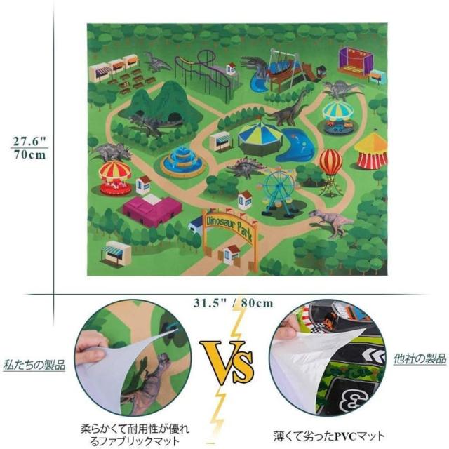 【活動ゲームパッド】競合他社と比較して、私たちのプレイマットは薄いPVCではなく、柔らかい不織布を採用して作られております。このプレイマットは明確なパターン、鮮やかな色で、スペースが広い2〜4人用の楽しい恐竜公園になっております。 マットのサイズ:70×80cm。プレイマットを広げてその上にたくさんの恐竜を置くことで、まるで本当の恐竜の世界なったみたいに、お子様にこの恐竜の楽園を楽しませよう。