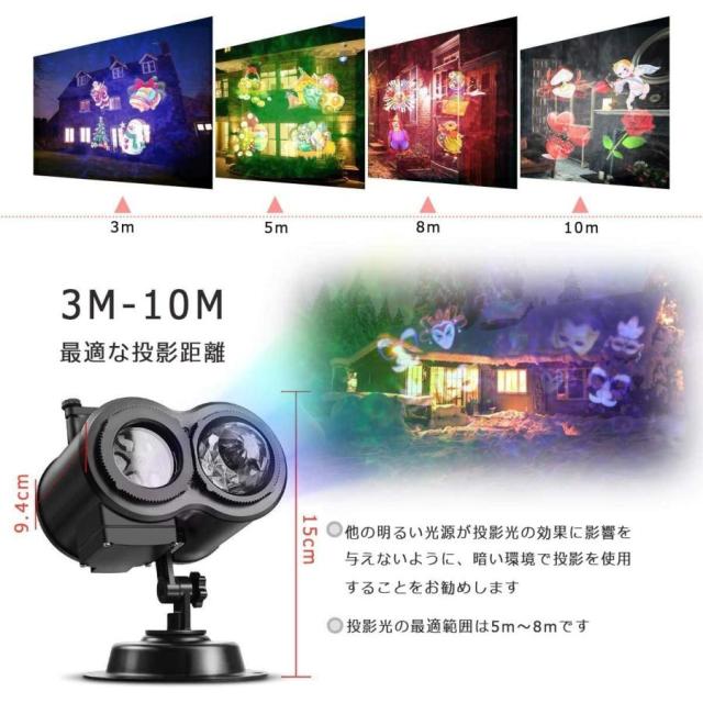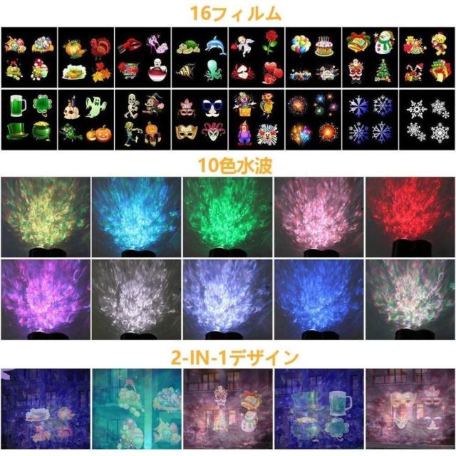 クリスマスプロジェクターライト 10カラライトモード LEDプロジェクターナイトライト 16色スライドハロウィーン 照明風景ライトショー