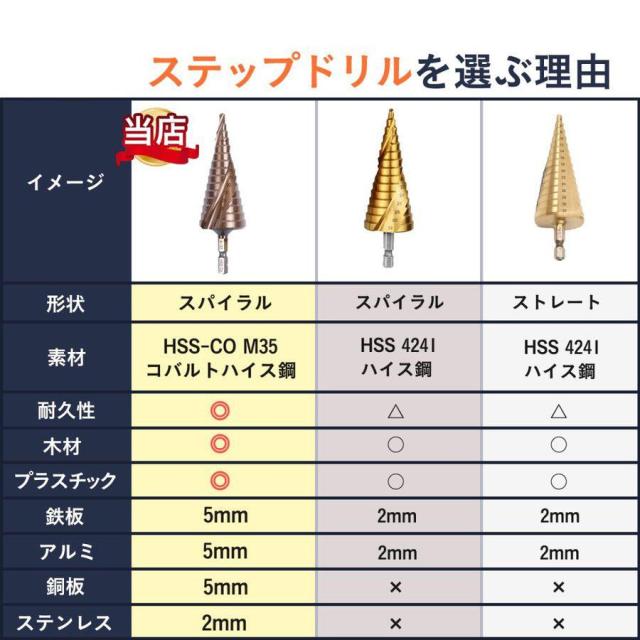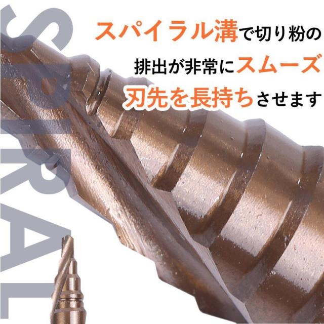 ステンレス用 スパイラル ステップドリル ドリルビット スパイラルドリル 穴あけ たけのこドリル 六角軸 4-32mm/15段