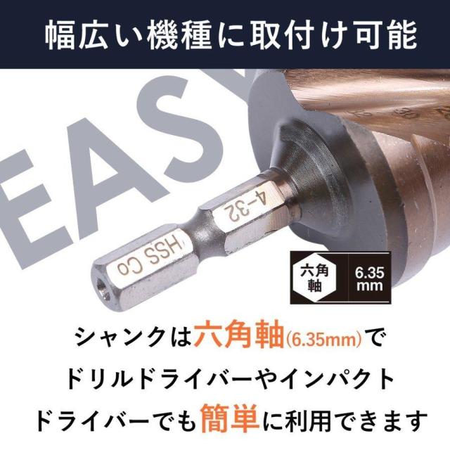 ステップドリル ステンレス用 ドリルビット 4-32mm/15段 たけのこドリル スパイラルドリル 穴あけ ドリル 六角軸 HSS-CO M35
