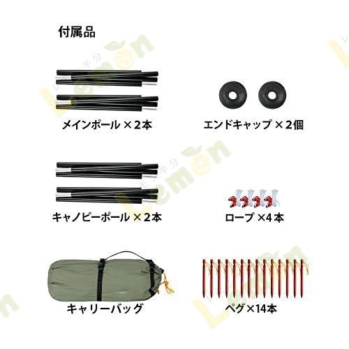 【セット内容】 ペグ、ロープ、メインポール、キャノピーポール、エンドキャップ、収納バッグ