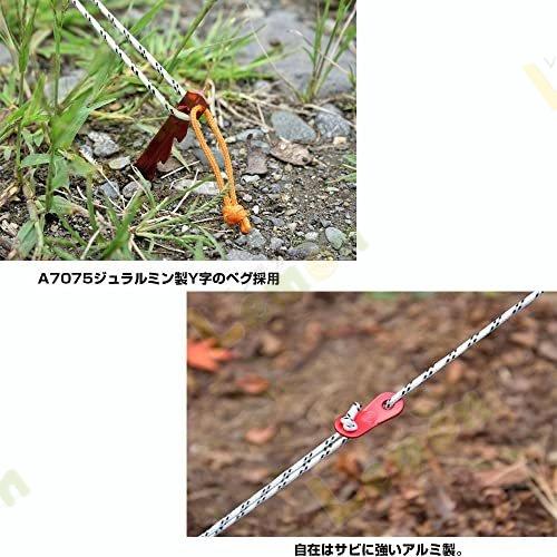 ・インナーテント足元には「収納ポケット」付き、強度の高い「Vアルミペグ」、強度が高く丈夫な「三角形タイプのロープ金具」、 夜間の引っかかりやつまずきを防ぐ「反射シール付きロープ」、コンパクトに収納可能な「コンプレッションベルト付き収納ケース」。