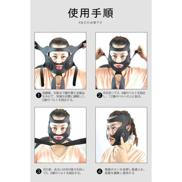 EMS電動美顔器 美容グッズ フェイスマッサージ 小顔 EMS美顔器 ウェアラブル 顔痩せ v顔 マッサージ フェイスエクササイズ ブラック 男女兼用