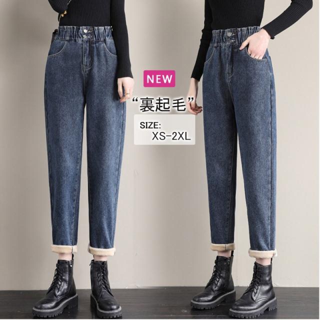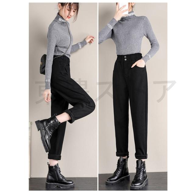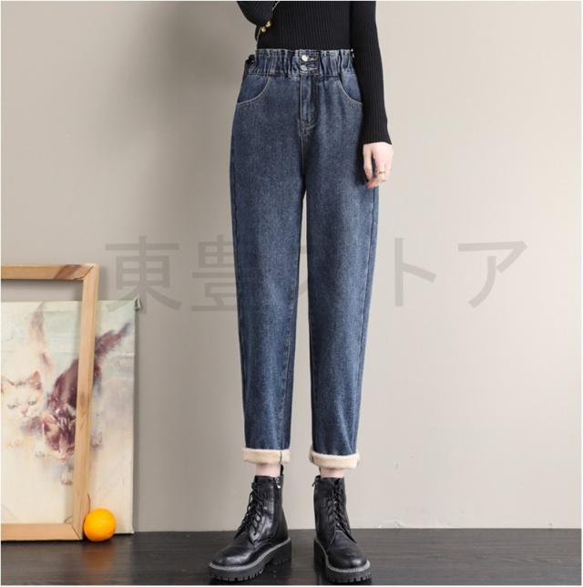 送料無料 レディース 秋冬新作 ポケット付き 体型カバー ハイウエスト 美尻 カジュアル ジーンズ ワイドデニムパンツ 裏起毛 伸