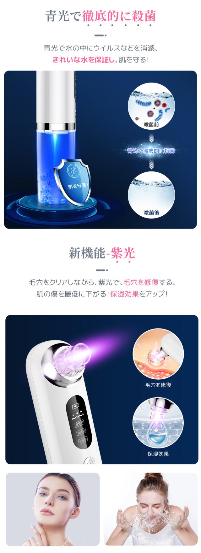 肌の悩みを一気に解決! 最新進化版 紫光機能追加 水流れ式 毛穴修復 保湿 全肌種対応 毛穴クリーナー 敏感肌適用 いちご鼻 黒ずみ 角栓 除去 顔 エステ 皮脂 肌の悩み スキンケア いちご鼻 美肌