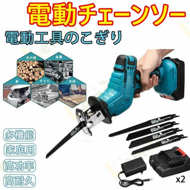 電動チェーンソー 多目的用切断機 強力片手 充電式のこぎり バッテリー2個+充電器 伐採 薪割り 草刈り 木工切断 枝切り 枝剪定 大工道具 園芸設備 農業