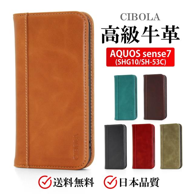 日本メーカーCIBOLA発売の高級牛革・本革 AQUOS sense7 ( au SHG10 / docomo SH-53C ) 手帳型ケース。安心な日本ブランド、日本デザイン、日本品質、本革のエイジングが楽しめる逸品。