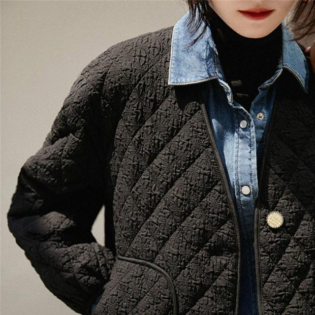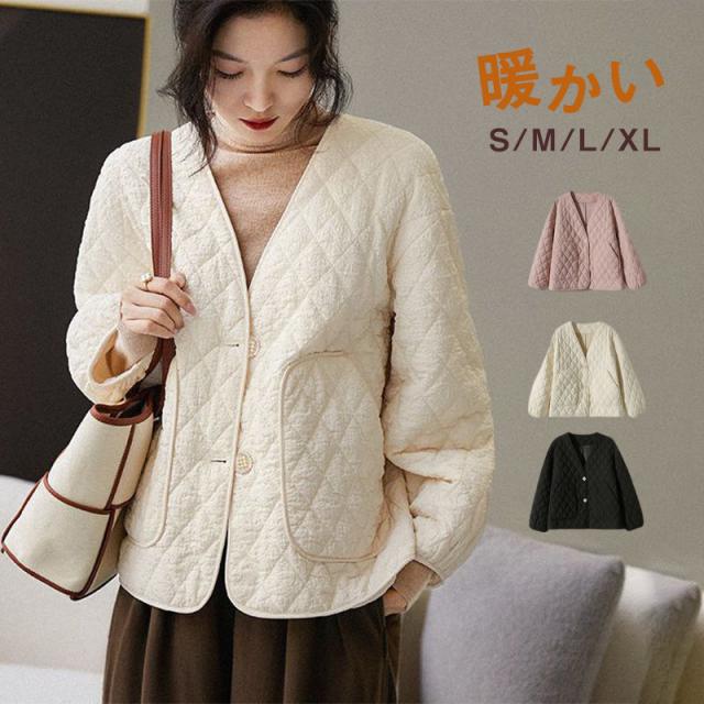 中綿コート レディース キルティングコート ダウンジャケット ダウンコート 秋冬 ショット丈 軽量 アウター 韓国風 ノーカラー