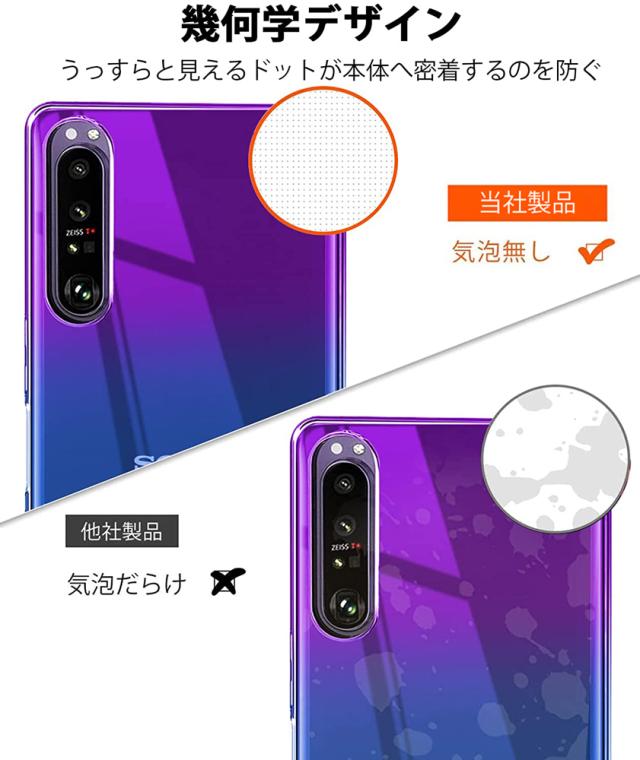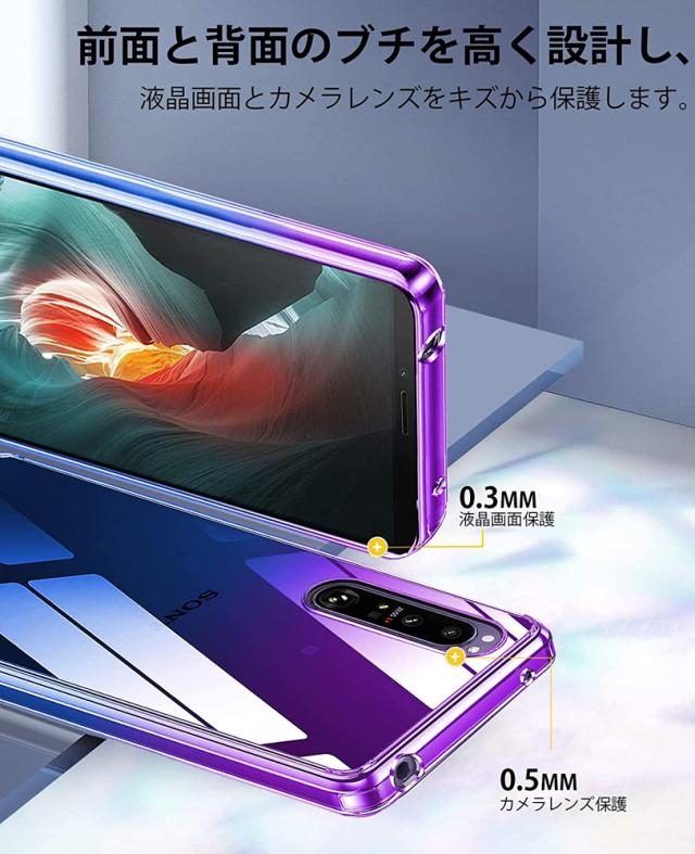 グラデーションのデザインで、端末の色により、違う色効果を現れ、Xperia5 IV の美しいデザインをより一層印象づける魅力があります。本体とピッタリ密着して違和感がない一体感が魅力的です。