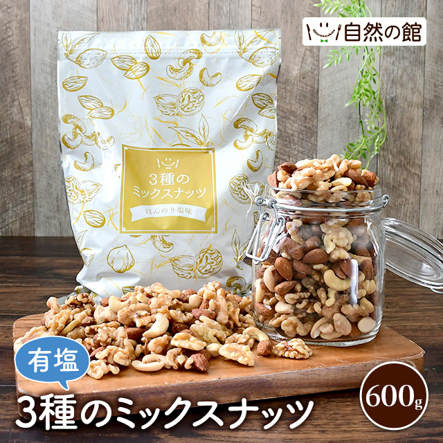 有塩 3種の ミックスナッツ 600g アーモンド クルミ くるみ カシューナッツ ナッツ