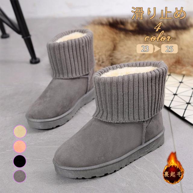 ムートンブーツ レディース ショートブーツ 内ボア ファー ぺたんこ リブニット 歩きやすい靴 秋冬 オシャレ きれいめ 送料無料