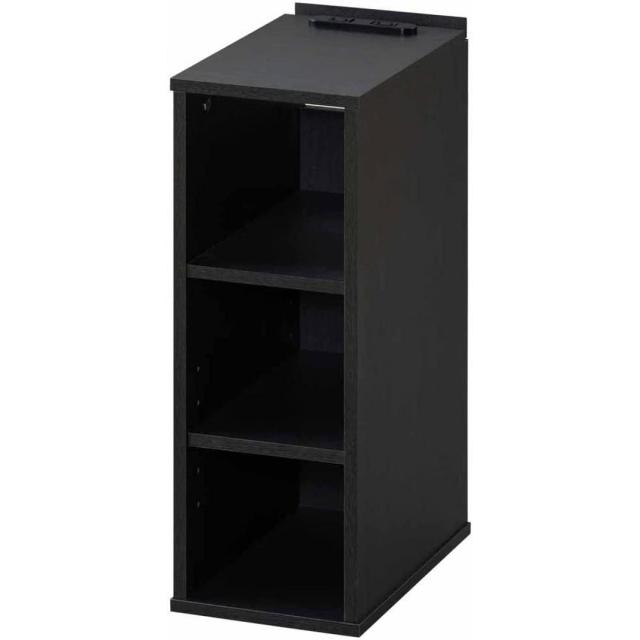 アイリスオーヤマ ナイトテーブル サイドテーブル 棚付き NTB-180R ブラック 2口コンセント スリム シンプル 充電 組立式 ベッドサイド