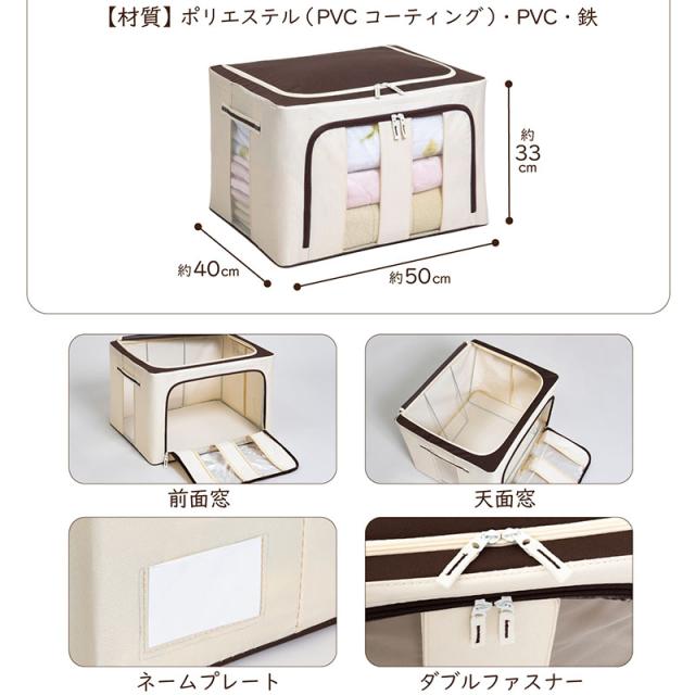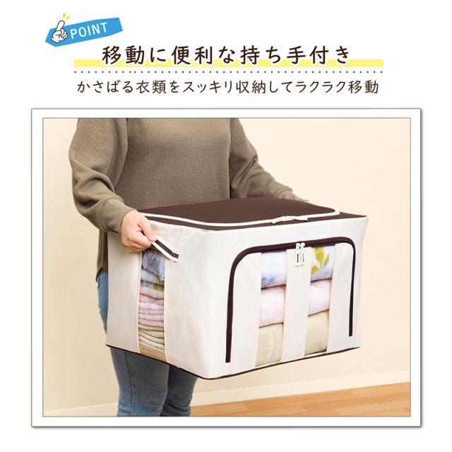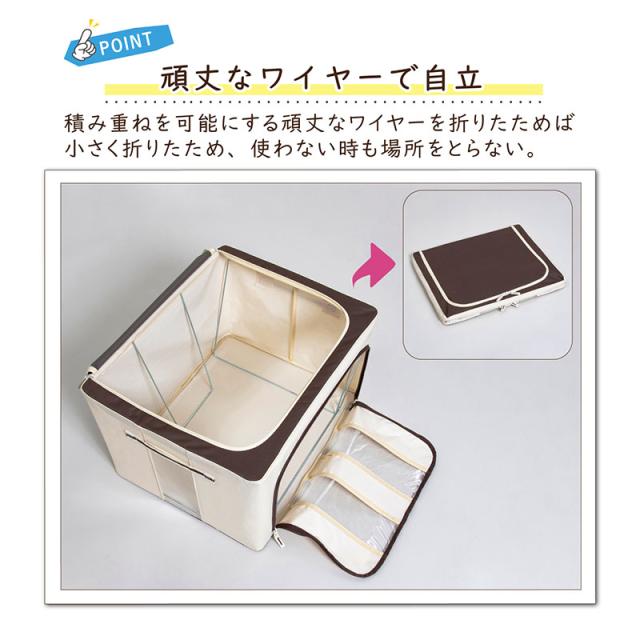 収納ケース 毛布・羽毛布団用 約66L 大容量 衣替え 自立 アイボリー×ブラウン ワイヤー・底板入り 収納ボックス 積み重ね 折りたたみ アストロ 730-45