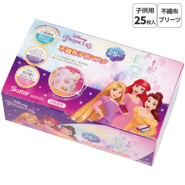 マスク 子供用 不織布 プリーツ マスク 25枚入り キッズ MSKP25 スケーター【キャラクター 箱型 子ども 子供 こども 園児 幼稚園 かわいい ディズニー プリンセス 女の子 女子】