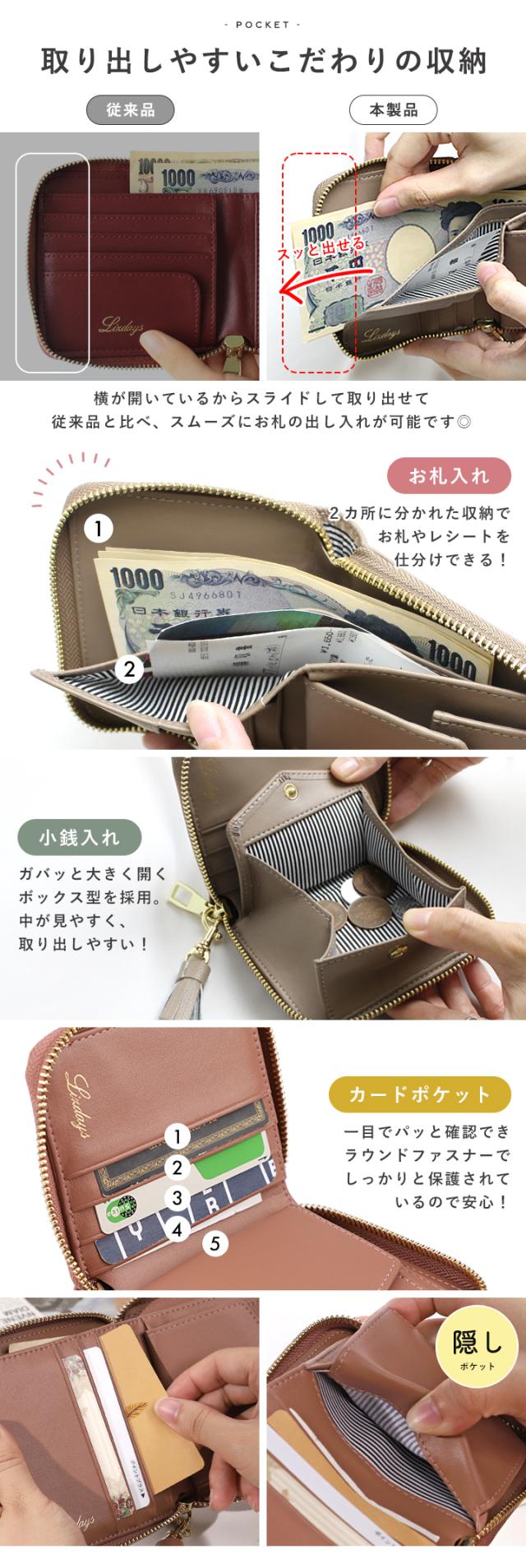 お札などがサッと取り出せて便利な仕様に。BOX型で